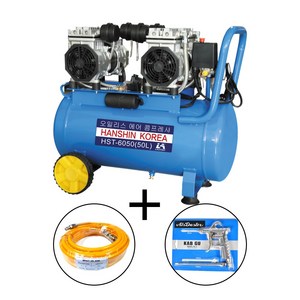 HANSHIN 한신 현장용 오일없는 6마력급 콤프레샤 HST-6050 (에어건 타카호수 10M 포함), 1개