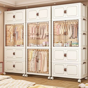 FOWOD 이동식 폴딩 옷장 수납장 폴딩박스 대용량 다용도 리빙박스 정리함, 1세트, 1옷장+2수납장