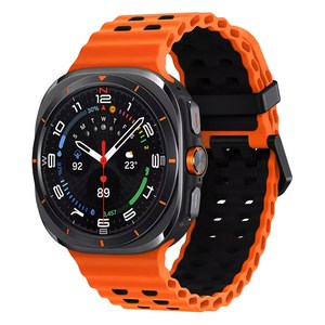 스페이스쉴드 갤럭시워치 투톤 마린 오션 실리콘 스트랩은 오렌지와 블랙의 조화가 돋보이는 제품이다. 이 제품은 투톤 디자인으로 스타일리시하고 활동적인 느낌을 준다.