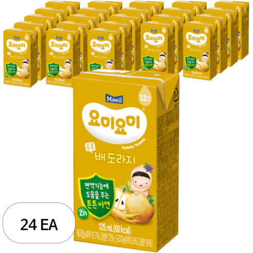 요미요미 튼튼주스는 125ml 용량으로 24개가 한 세트로 구성된 제품입니다. 신선한 과일과 채소의 영양소가 가득 담긴 이 제품은 건강을 도와줍니다. 자연 그대로의 맛과 영양을 그대로 담은 주스로 어린이부터 어른까지 즐기기에 적합합니다.
