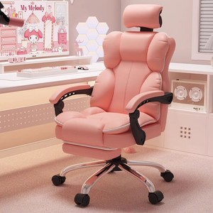 핑크색 디자인의 고급 가정용 컴퓨터 의자로 발받침대가 포함되어 편안한 사용이 가능합니다.