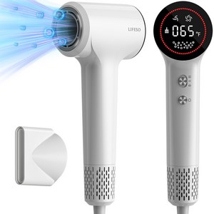 라이프소 초고속 디스플레이 더블이온 헤어 드라이기 가정용 휴대용 옴이온 경량 드라이어 BLDC 모터1500W 530g, 펄 화이트