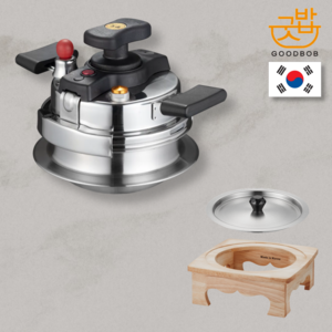 굿밥 1인용 2인용 4인용 압력솥 누룽지 미니 압력밥솥 인덕션 가스, 혼합색상, 1세트, 0.75L, 1인용 양수 압력솥+스텐뚜껑/나무받침 세트