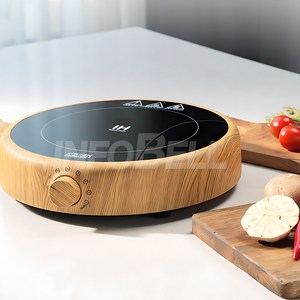 [인포벨 홈쇼핑]키친플라워 원형 우드인덕션 렌지 2000W 고강도 1구 전기레인지 후라이팬 증정