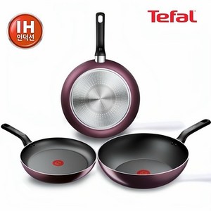 테팔 인덕션 티타늄 메를로 후라이팬 웍 3종세트, 블랙+버건디, 1세트, 프라이팬24+28+웍28