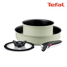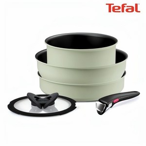 테팔 매직핸즈 인덕션 크렘 드 피스타치오 4종 세트는 팬 24cm, 냄비 16cm, 유리뚜껑과 분리형 손잡이로 구성되어 인덕션 사용에 적합하고 조리 편의성을 높였다.