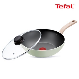 테팔 인덕션 민트 세이지 웍 28cm와 유리뚜껑 28cm 세트로 인덕션 호환과 편리한 조리가 가능하며 민트 색상으로 주방에 산뜻함을 더한다.
