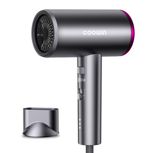 Coowin쿠윈 음이온 고속 헤어 드라이기 초경량 고출력 모발 보호 드라이기 1800W, 다크 그레이
