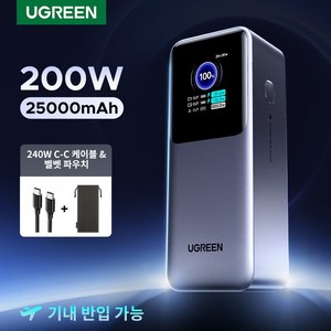 UGREEN 유그린 Nexode 200W 보조배터리 25000mAh 대용량 보조배터리고속충전 PD 3.1 고속 충전 3포트 보조베터리 240W C-타입 고속 충전 케이블 포함, 1개, Grey, PB722