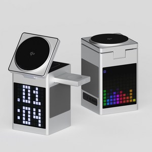 퍼플래빗 Qi2 3in1 맥세이프 무선 스피커 충전기 픽셀, 1개, 애플용실버