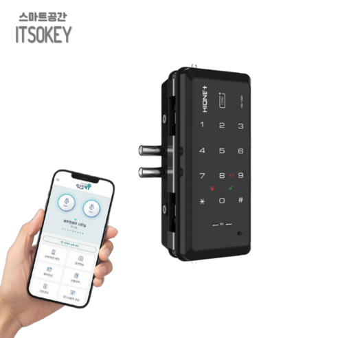 스마트공간 IoT 도어락 유리문 잇소키 - 클립형 WiFi 도어록 매장 강화유리 단문 양문형