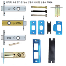 7mm·8mm 방문손잡이용 래치와 면판, 캐치, 핀 등 부속품 세트로 문고리와 열쇠 설치에 필요한 부품을 포함한 제품입니다.