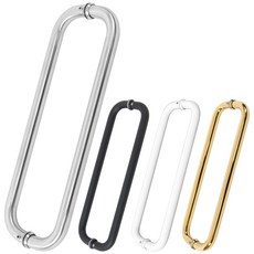 철물이네 강화도어 손잡이 340mm 스텐 마주 원형 유리문, 실버무광