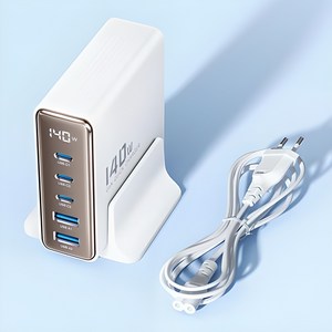 140W 출력과 LED 디스플레이를 갖춘 GaN 기술 기반 5포트 초고속 멀티 충전기.