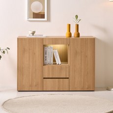 새싹가구 1200 에스텔 다용도 서랍 조명 수납장, 오크