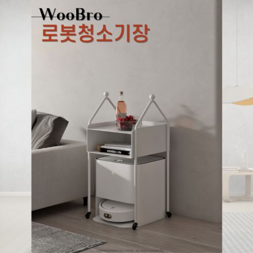 우브로 이동식 로봇청소기 수납장은 깔끔한 정리를 돕고 공간 활용에 효율적이며 바퀴가 있어 이동이 편리하다. 견고한 소재로 내구성이 좋고 여러 크기의 로봇청소기를 수납할 수 있다.
