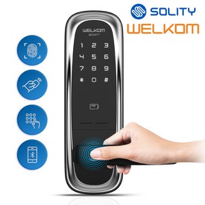 솔리티 웰콤 무타공 도어록 [사이언플러스] 지문인식+카드키2개+번호키 즉시잠금 블루투스(옵션) 빠른지문인증 0.9초 마스터번호[카드]기능 내부강제잠금 현관문 디지털도어락 지문키, 웰콤 사이언플러스, 고객직접설치