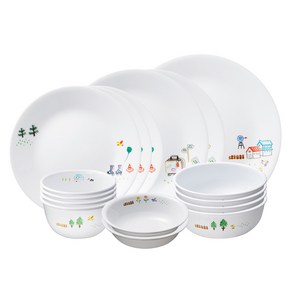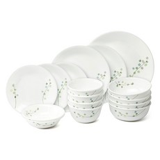 코렐 그린딜라이트 4인 코리안 베스트 셀러 식기 세트 A 16p, 공기 4p + 대접 4p + 앞접시 2p + 원형소접시 3p + 원형중접시 2p + 원형대접시, 1개