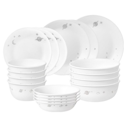 코렐 셀레스티얼원더 18피스 세트는 4인용 원형 접시와 볼, 사이드 플레이트가 포함되어 다양한 식사 구성에 적합하며, 가벼운 소재와 내구성으로 일상 사용과 손쉬운 보관이 가능한 디자인이다.