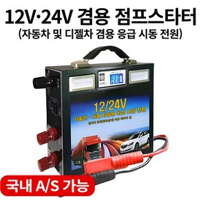 대한민국에서 제조된 12V와 24V 겸용 점프스타터로, 다양한 차량에 사용 가능하며 대용량 배터리를 탑재해 비상 시 빠르고 안정적인 시동이 가능한 제품.
